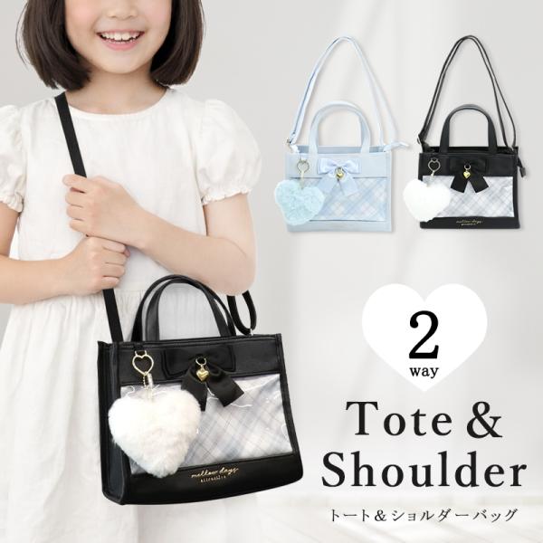 ショルダーバッグ トートバッグ キッズ 女の子 小学生 可愛い 2WAY 子供 ブラック かわいい 大人っぽい 合皮 手提げ ハート 推し活 送料無料 ラクロジ発送