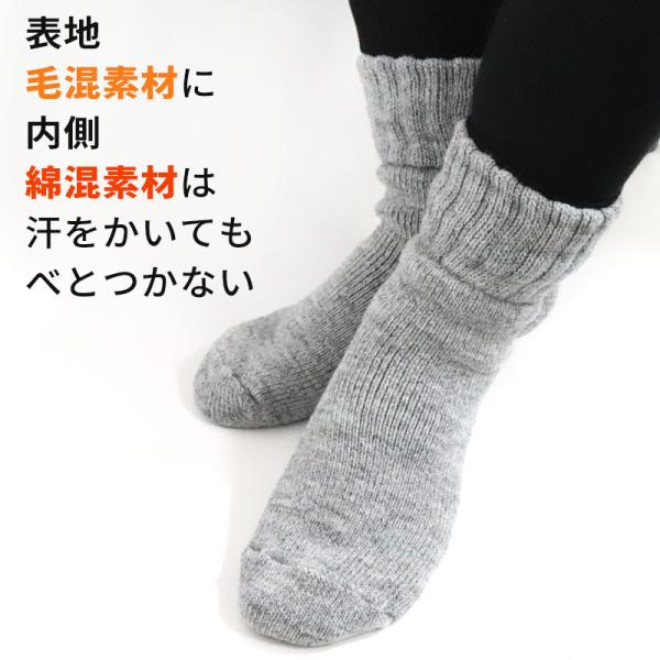 靴下 レディース 暖かい 2重 極厚 ソックス ルームソックス 日本製 厚手 防寒 あったか 口ゴムゆったり 毛混 寒さ対策 冷え取り靴下 22〜25cm メール便送料無料