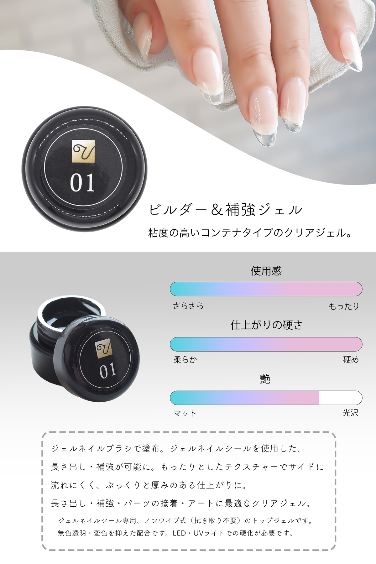 【うるりら公式】ジェルネイルシール専用 ビルダー&補強ジェル クリア アートジェル ジェルネイル用品 爪 ジェルネイルシールの上から 塗って 硬化 補強 長さ出し パーツ接着 ノンワイプ 7ml Ururila [nu1672]