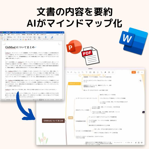 マインドマップ ChatGPT搭載 GitMind AIマインドマップ (3年版/ダウンロード版) WindowsとMac対応 AI フローチャート 組織図 議事録作成