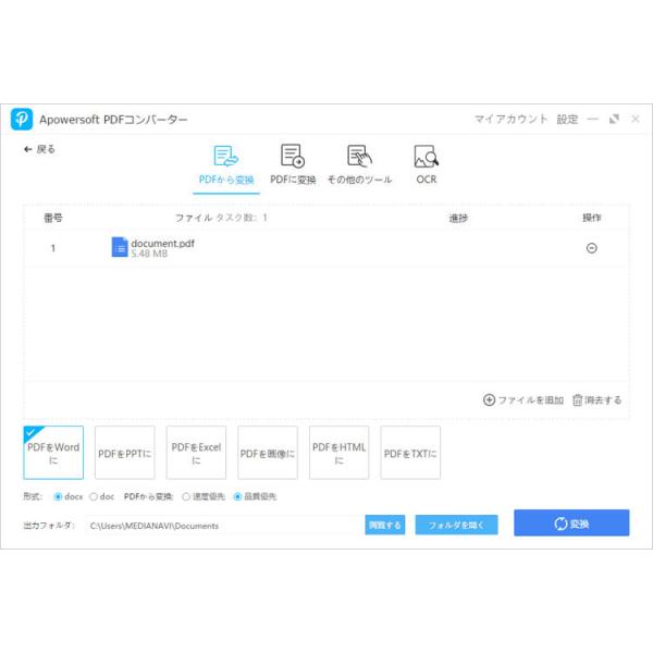 PDF文書をOffice文書をはじめとしたさまざまな形式に一括変換。
