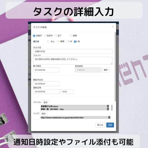 メール&チャット通知(作業開始・終了予定日お知らせ、期限切れ、期限未設定タスクの連絡)