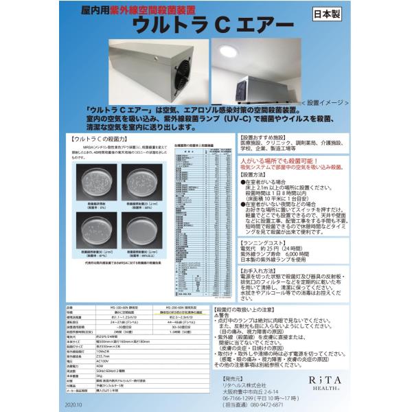 「ウルトラCエアー」は空気、エアロゾル感染対策の紫外線空間殺菌装置。