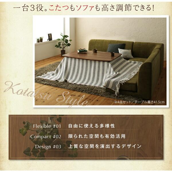 ダイニングテーブルセット ダイニング リビング こたつ ヒーター 高さ調節 4人 5点セット(テーブル+2Pソファ1脚+1Pソファ2脚+コーナーソファ1脚) W120