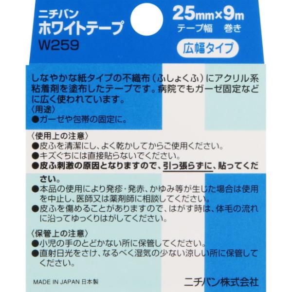 【メール便05】ホワイトテープ (25mm*9m) ニチバン 医療用テープ 医療用テープのスタンダード