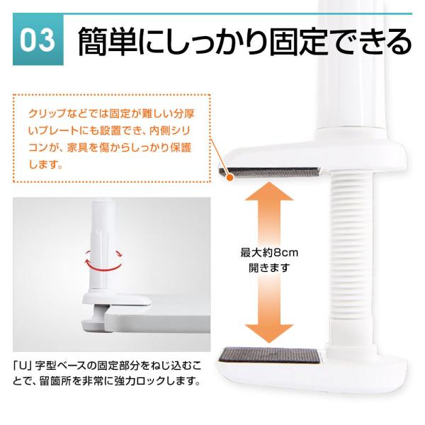 クリップ下のジョイントは360°対応で好きな角度に自由自在調整可能となります。