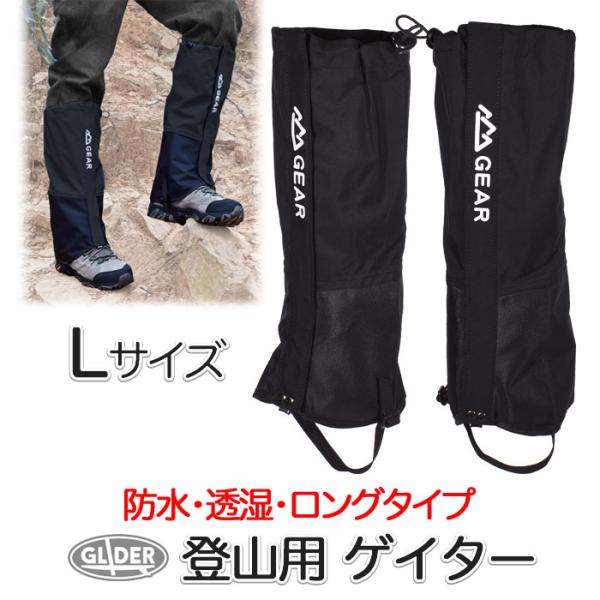 登山用ゲイター ブラック Lサイズ 防水 登山スパッツ 男女兼用 ロング ゲーター 3色 3サイズ 登山靴カバー レインスパッツ レッグカバー 雨 撥水 泥除け 雪