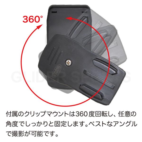 ■付属のクリップマウントは360度回転するので、用途に合わせた角度調整が可能です。