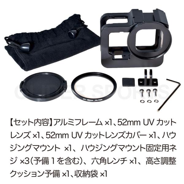GoPro HERO12 / HERO11/10/9Black用 フレーム アルミ製 UVカットレンズ付き 当社ズームレンズ取付可能