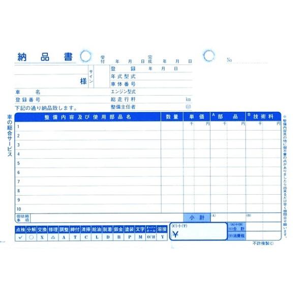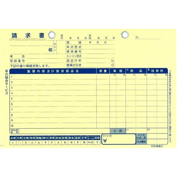 ☆一般整備請求書 D-11・サイズ:135×190mm 30組3枚複写・内 容:1枚目 売上元帳 ・2枚目 納品書 ・3枚目 請求書送料区分:Sサイズ