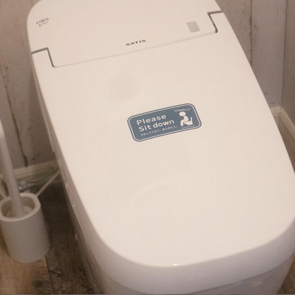 嫌な飛び散りを防止する、座りション ステッカー。