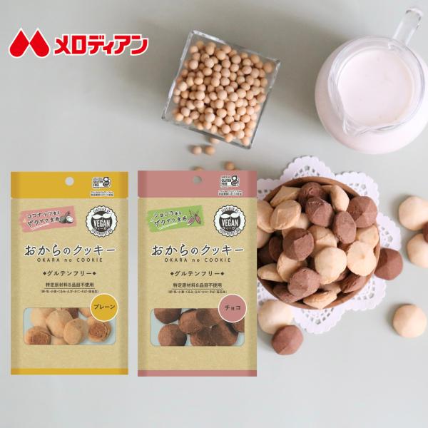 メロディアン おからのクッキー 4袋セット チョコ プレーン グルテンフリー 乳・卵・小麦・白砂糖不使用 1袋8個入り 送料込み