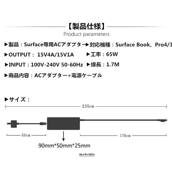 Microsoft Surface Book用ACアダプター15V 4A 電源