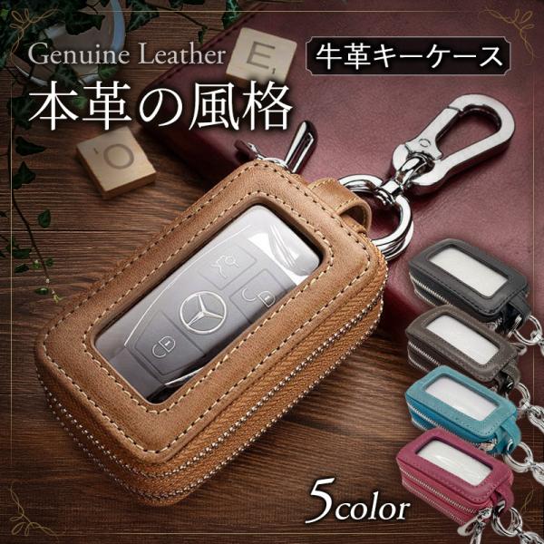 スマートキーケース キーケース ダブルファスナー メンズ レディース クリア窓 レザー ダブル 2つ 鍵 収納 かわいい おしゃれ プレゼント 高級