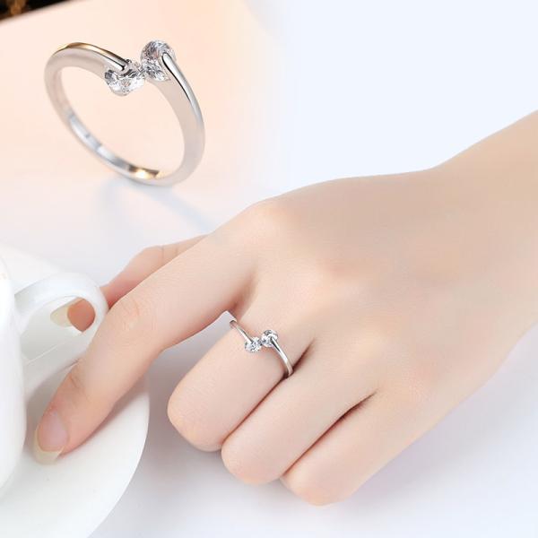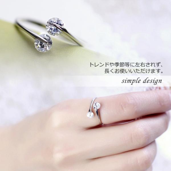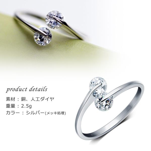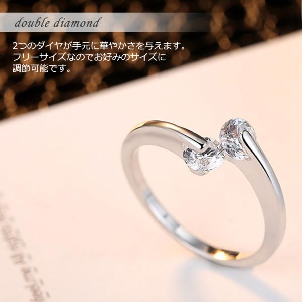 レディース リング CZダイヤ 18KGP 指輪 フリーサイズ ジルコニア 2粒ダイヤ おしゃれ かわいい プレゼント