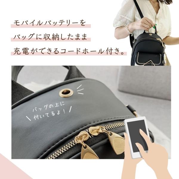 コードホール付きなので、モバイルバッテリーをバッグに収納したまま充電可能。