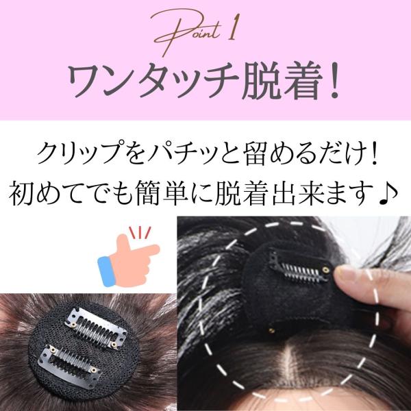 ワンタッチで脱着できるので、初めてウィッグを使う方でも簡単で使いやすいです。