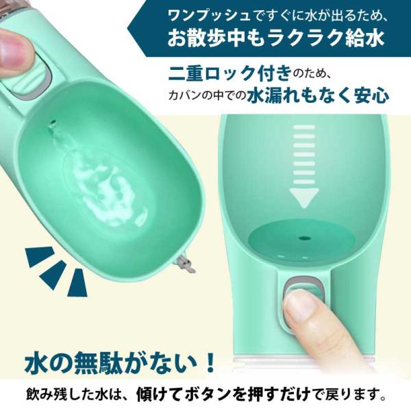 ワンプッシュですぐに水が出るため、お散歩中もラクラク給水。