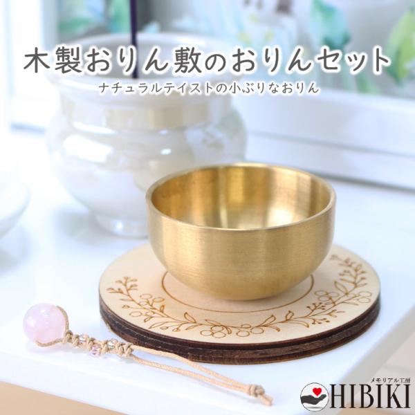 ペット仏おりんセット ペット供養 仏具 木製 おりん敷き こりん ローズクォーツ りん打ち ナチュラル具 おりん3点セット ライン入り りん ピンク座布団つき