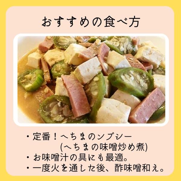 沖縄では、ナーベーラーの開花から約2週間頃の若い実を食用にします。水分が多く、ビタミンやミネラルを豊富に含んでいます。沖縄ではナーベーラーを味噌煮にすることが多く、そのなめらかな食感とまろやかな甘味が食欲をそそります。その他、炒め物や汁物にも適しています。皮をそいで、柔らかいタネもそのまま残して調理します。