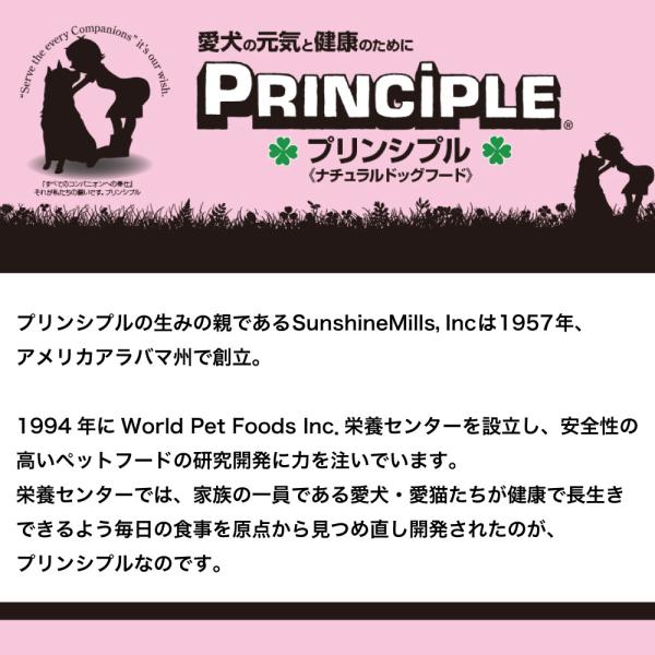 愛犬の健康は「管理監視された安全な原材料使用」と、「愛犬に本当に必要な成分の使用」の原点に基づいてプリンシプルは製造されています。