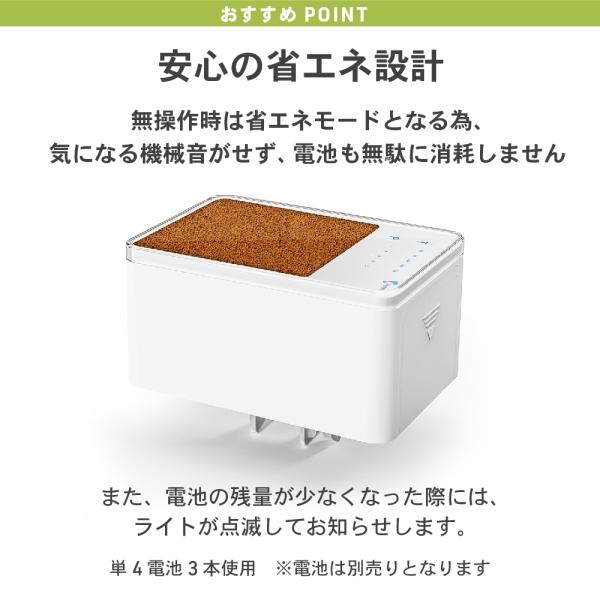 給餌時間と給餌量はそれぞれ5段階の設定が可能で、急な出張や旅行時も安心です。