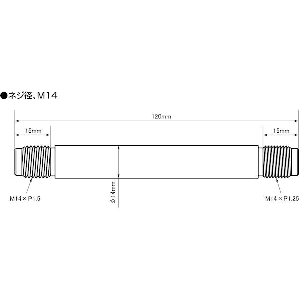 ホイールセッティングアシストボルト M14×P1.25・M14×P1.5兼用 全長120mm ※ケース無