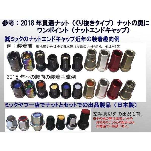 (空きネジ部6mm以上無い場合、メーカーや法令で安全を確保できるとする範囲内ならオフセットを調節〔例:ホイールスペーサー等〕も適応であれば一考です。その他の出品物の弊社オリジナル「レーシングナット」はナットエンドキャップ取付可能なナットです。)