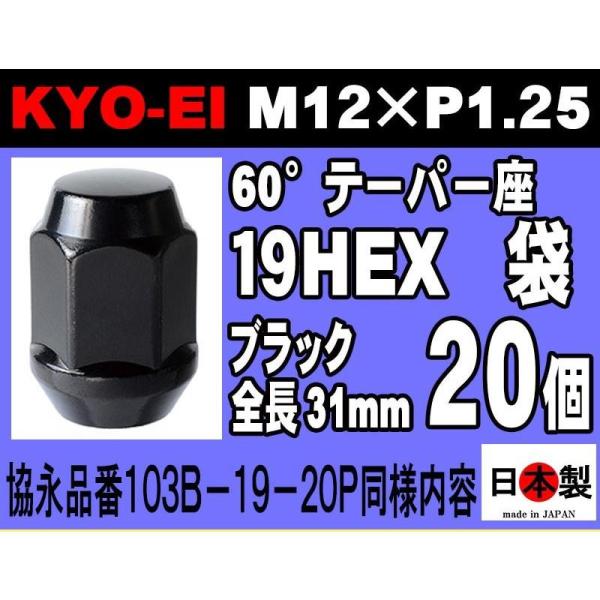 1注文2個迄 協永 5穴車向 ブラック ブルロック ナット セット 黒 19HEX 袋 全長31mm 60° 日本製 0653B-19 P1.25 黒 KYO-EI 103B-19