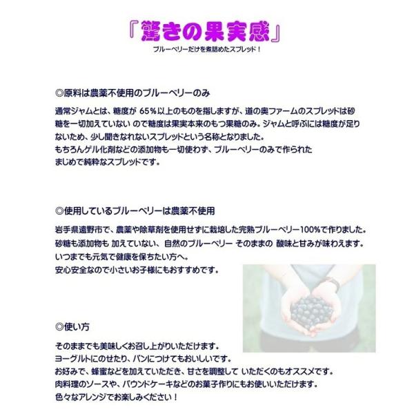 岩手、遠野産農薬不使用の完熟ブルーベリーをそのまま砂糖なしで煮詰めたスプレッド。