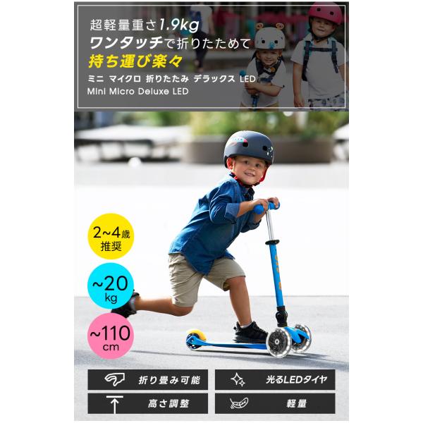 マイクロスクーター《正規品》ミニ マイクロ 折りたたみ デラックス LED 2歳〜 光るLEDタイヤ 折りたたみ可能 キックボード キックスクーター ブレーキ 三輪車 誕生日 ギフト プレゼント 入学祝い 卒業祝い 男の子 女の子 2歳 3歳 4歳 5歳