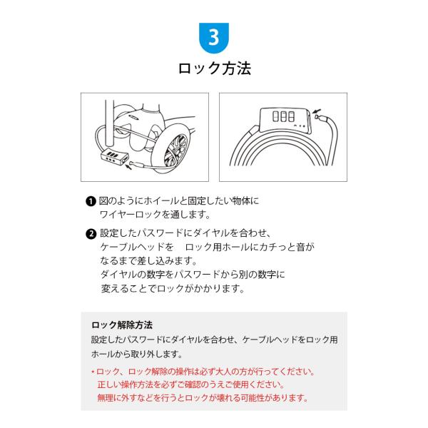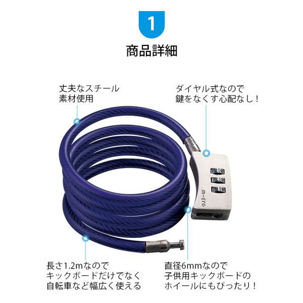 ダイヤル式ワイヤーロック キックボードの盗難防止に! ワイヤーロック ダイヤル 盗難防止 鍵 チェーンロック カギ かぎ ダイヤル式 子供 キックボード