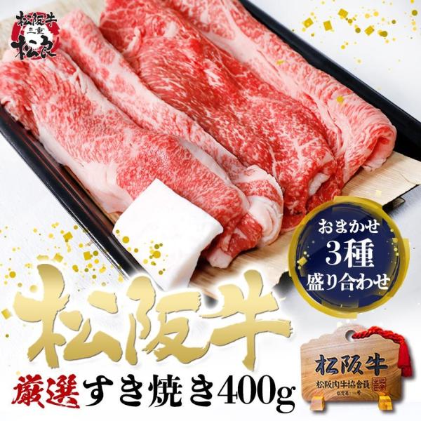 松阪牛 すき焼きセット 厳選3種盛り 400g 牛肉 肉 お年賀 ギフト プレゼント 2026 すき焼き肉 すき焼き セット 福袋 食べ物 すき焼き用 焼き肉 赤身 ロース 松良