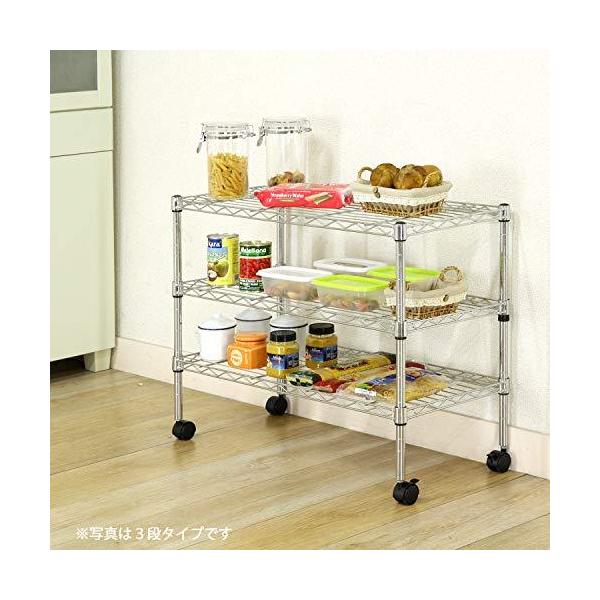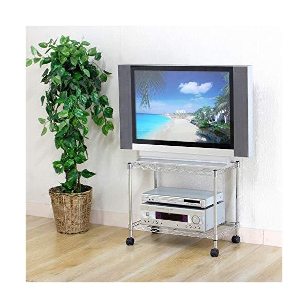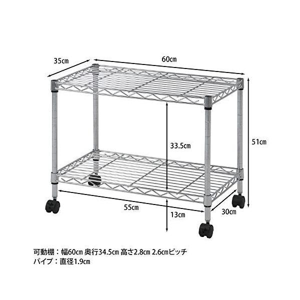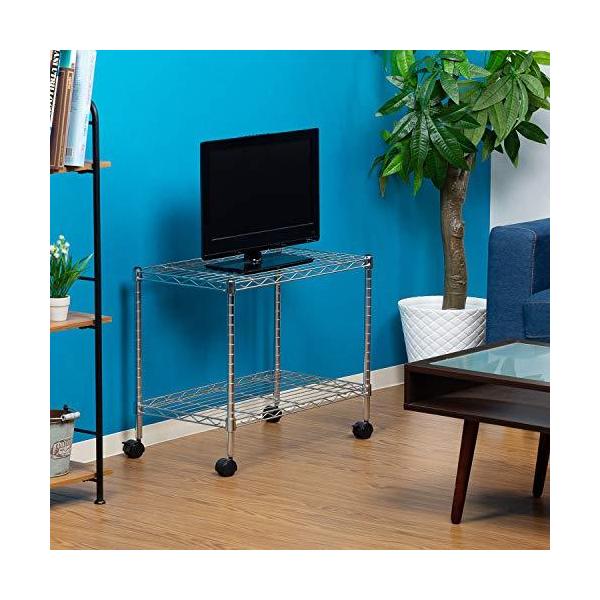 スチールラック メタルシェルフ 2段 幅60×奥行35×高さ51cm クロムメッキ キャスター付き テレビ台 ローボード 91783
