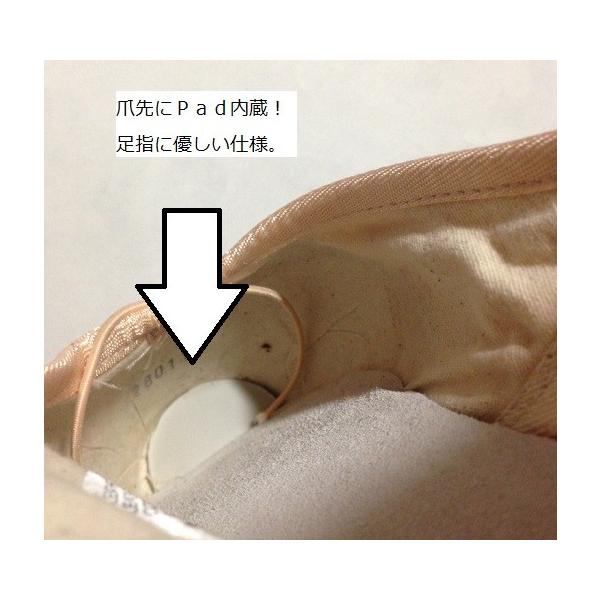 つま先の内側にパッドが付いていて、トウパッドをそう厚くしなくても痛みがないようになっています。