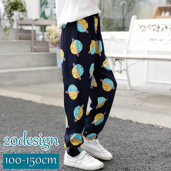 ジョガーパンツ ジョグパンツ 子供服 キッズ ジュニア ロングパンツ 長ズボン 裾絞り パンツ 総柄 プリント 裾リブ ウエストゴム サルエル 楽ちん