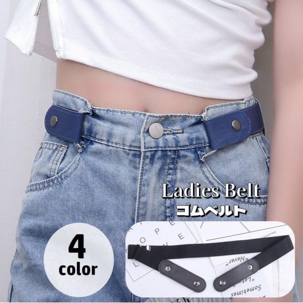 ゴムベルト ループフックベルト レディース バックル付き スナップボタン 伸縮 サイズ調節可能 デニム調 簡単装着 ノーバックル 女性用 婦人用 無地