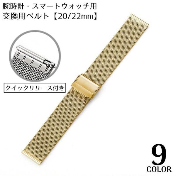 ベルト バンド 付け替え 交換用 腕時計 スマートウォッチ 20mm 22mm ステンレス ミラネーゼ メッシュ スリム 装着簡単