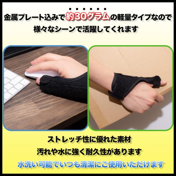親指と手首をしっかり固定して不快感を和らげます。