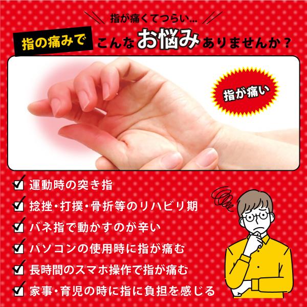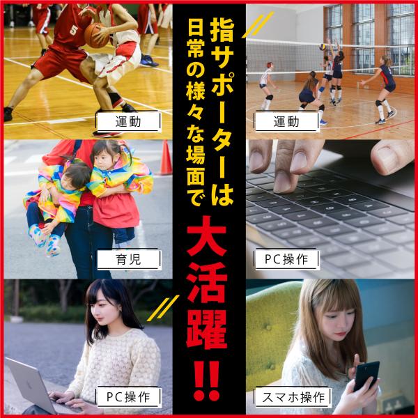 全ての指に装着可能で指を固定しサポートします。サイズを気にせず全ての指に使用できます。