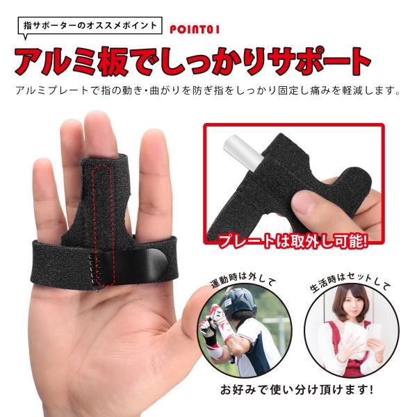 アルミプレートで指の動き・曲がりを防ぎ指をしっかり固定し痛みを軽減します。