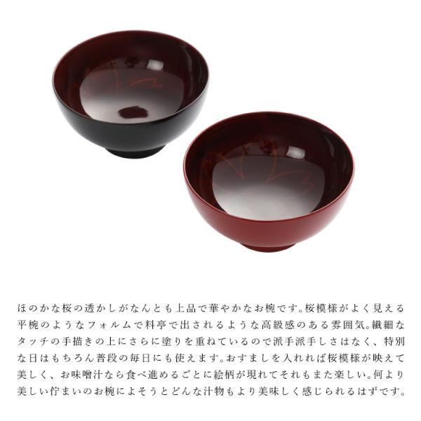 井助商店 透かし内桜夫婦椀セット 仙才汁椀 溜・朱 箱入り