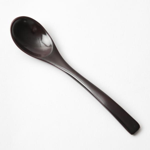 シンプルで飽きのこないデザインの漆器のスプーンです。コーヒーや紅茶用だけでなく、茶碗蒸などにもお使いいただければ、木製ならではの口当たりのやわらかさをお楽しみいただけます。また熱いスープでも金属のようにスプーンは熱くなりませんし、何より軽いのも魅力です。お子様用のスプーンとしてもおすすめです。