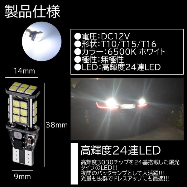爆光 LEDバックランプ 12V 24連 LED 3030SMD T10/T15/T16 バックランプ 車検対応 24SMD 6500K 無極性 キャンセラー内蔵 2個SET