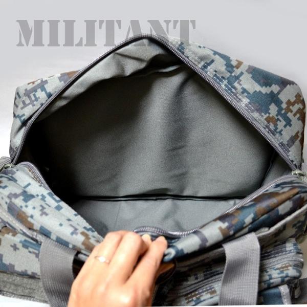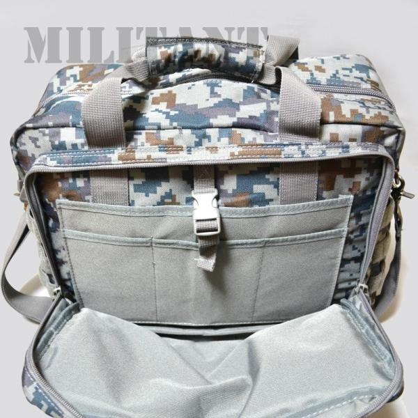 空自衛隊仕様 航空自衛隊デジタル迷彩モデルの大型ドキュメントバッグです。 大好評販売中の陸上自衛隊迷彩ドキュメントバックをそのまま小さくした、航空自衛隊デジタル迷彩モデルです。メインポケットにはパッドが内蔵されており、ノートPC等もしっかり収納できます。通勤や、ちょっとした旅行などに大変重宝します。かなりのマチがあり、小分けのポケットも多くかなり収納できるバッグです。ネームカードやパスカードなど入れられるポケットも付いております。