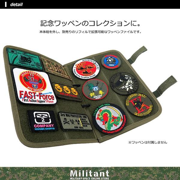 待望のワッペンファイルが、リニューアルして登場致しました。本体の紐を外し、別売りのリフィルでページ数を自由に増やすことが出来ます。本商品にはリフィルが2枚付属いたします。カラーは、迷彩と黒の2種類からお選びいただけます。商品サイズ:本体サイズ:約30×21cm