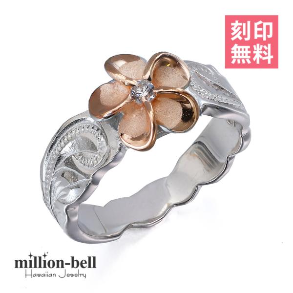 ハワイアンジュエリー リング 指輪 刻印無料 レディース シルバー925 ピンク プルメリア ハワジュ 40代 50代 30代 20代