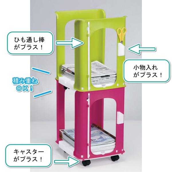 新聞 ストッカー ラック からふるしんぶん楽っく プラス 新聞紙 雑誌 収納 キャスター付き ハサミ小物入れ付き ひも通し棒 付き