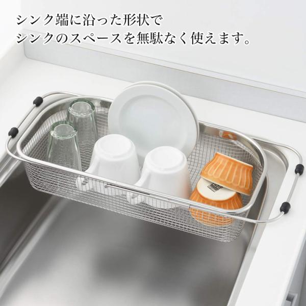 シェイプライン スライド式 メッシュ シンクバスケット 大 SH-024 水切り ラック かご ステンレス シンク内 伸縮 調整
