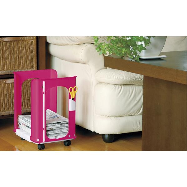新聞 ストッカー ラック からふるしんぶん楽っく プラス ピンク 新聞紙 雑誌 収納 キャスター付き ハサミ小物入れ付き ひも通し棒付き